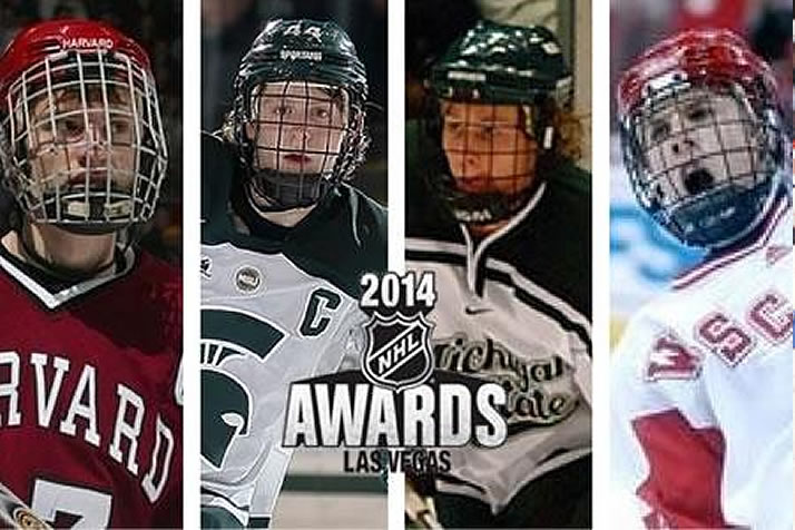 College hockey alums were among the honorees as the National Hockey League celebrated its 2013-14 season at the NHL Awards show Tuesday night in Las Vegas.